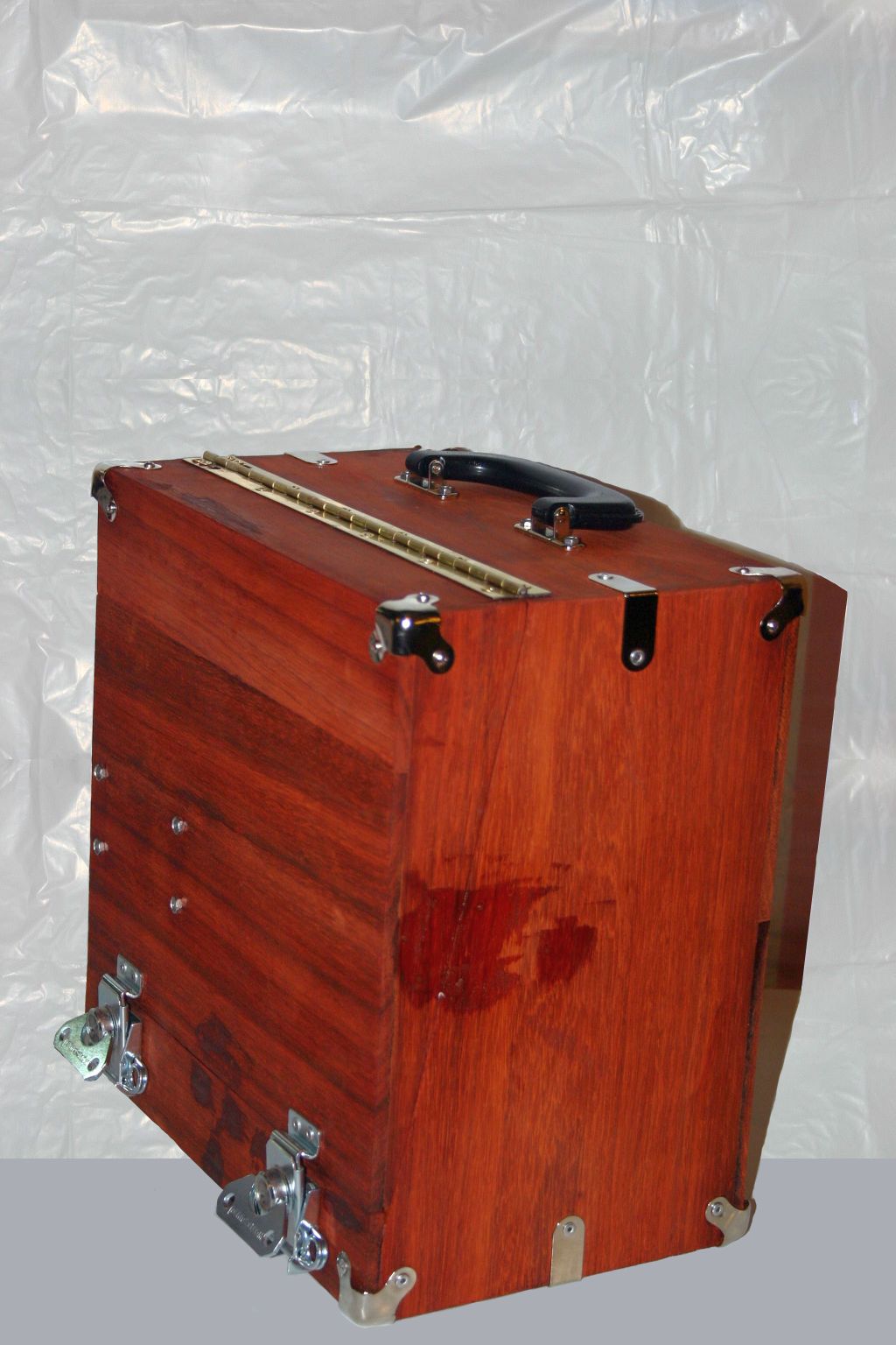 The door is made the same way as the rest of the box - 1/4 Paudauk, pinned