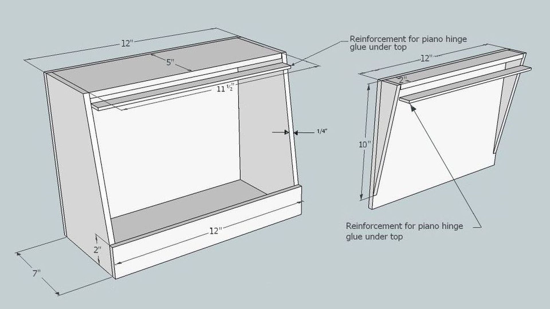 and the box. This allows me to use longer screws for the piano hinge than the